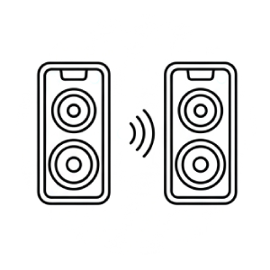 可兩台串連 兩台音響同步連線,打造更立體寬廣的環繞音效。